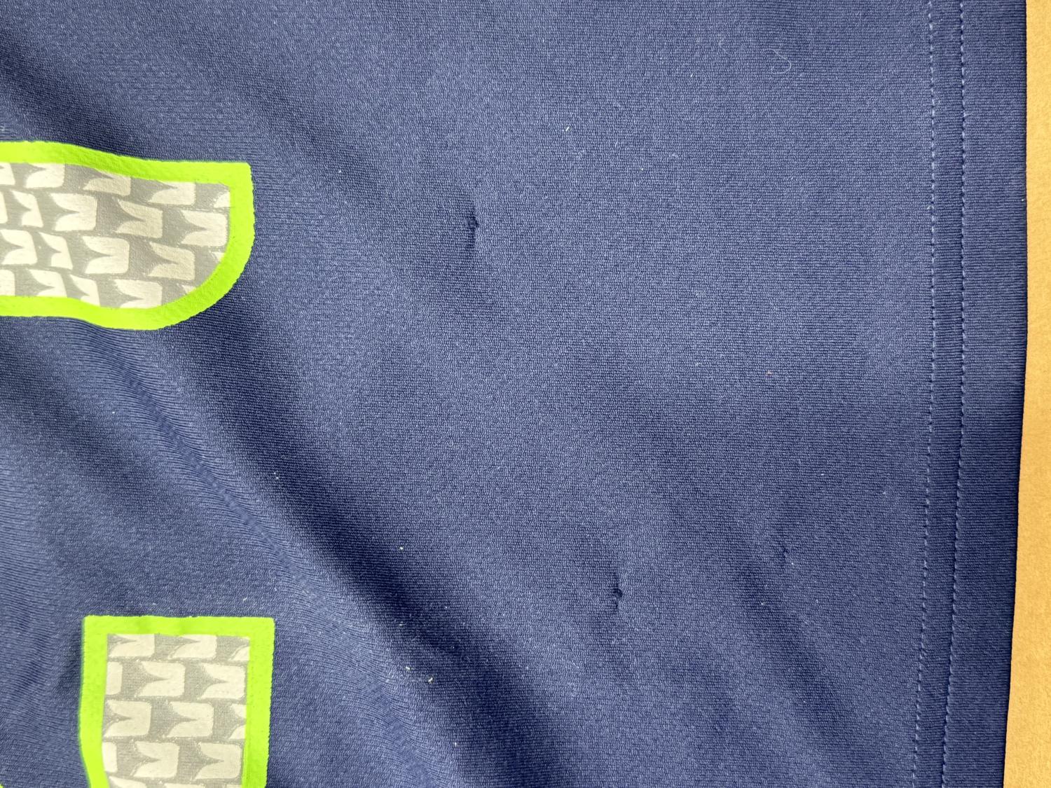 A small paint spot and a couple snags (pictured).