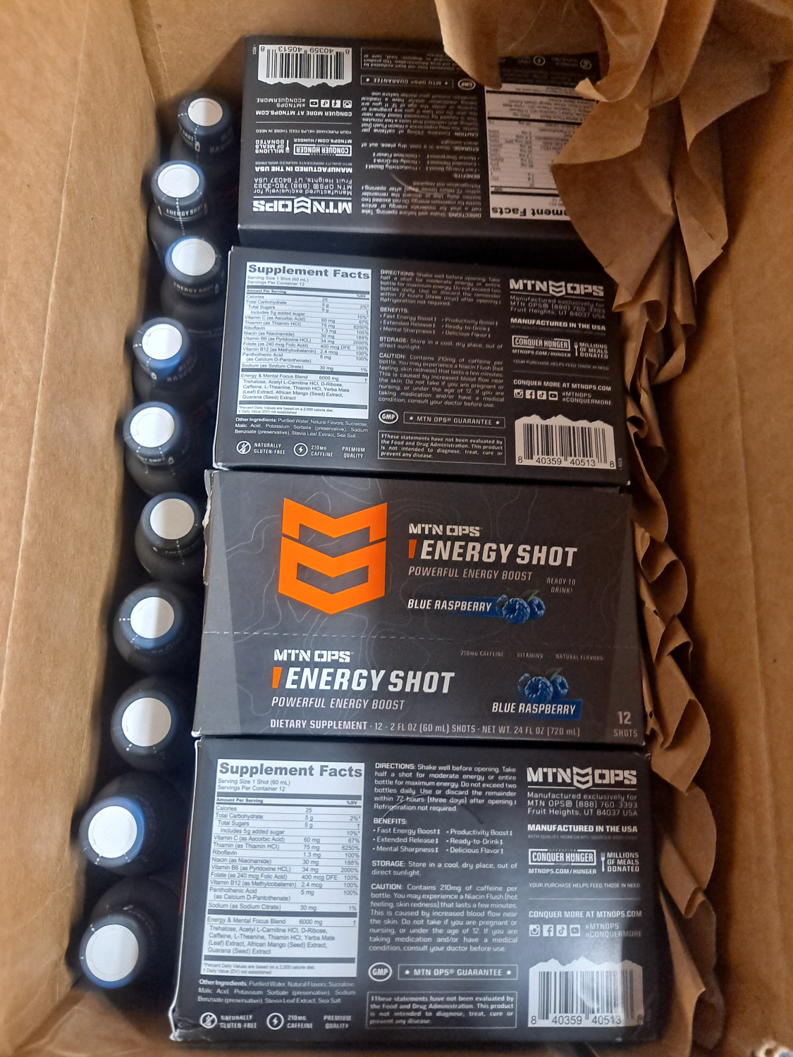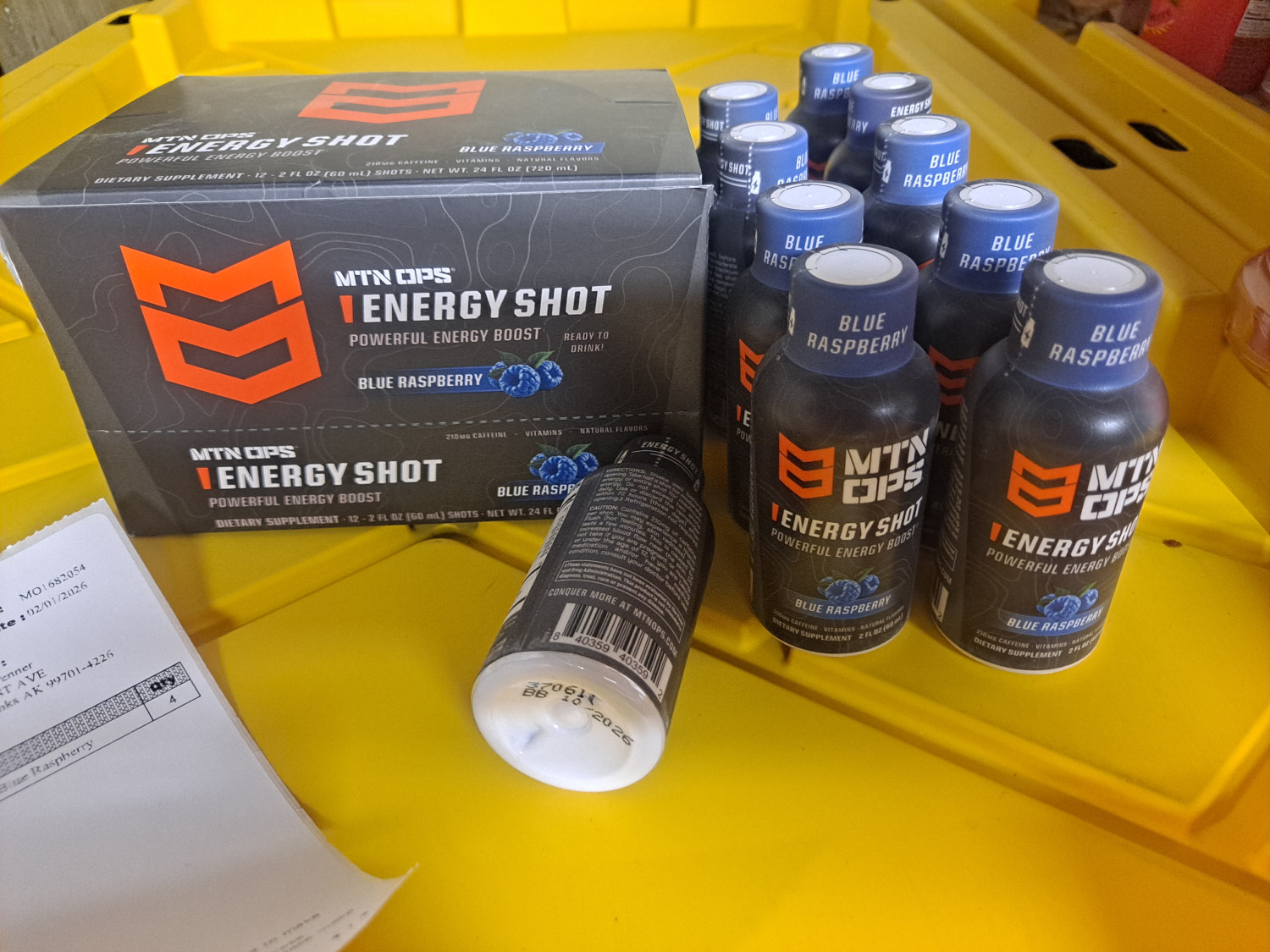 58 unopened Mountain Ops Energy Shots- usually $2.99 each - all blue raspberry flavor and ordered February the best buy date is 10/2026 after ordering my husband got told not to have caffeine anymore