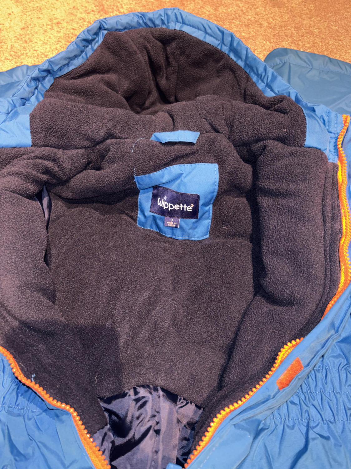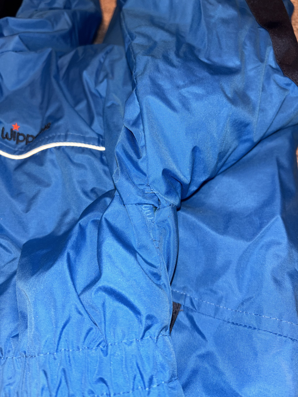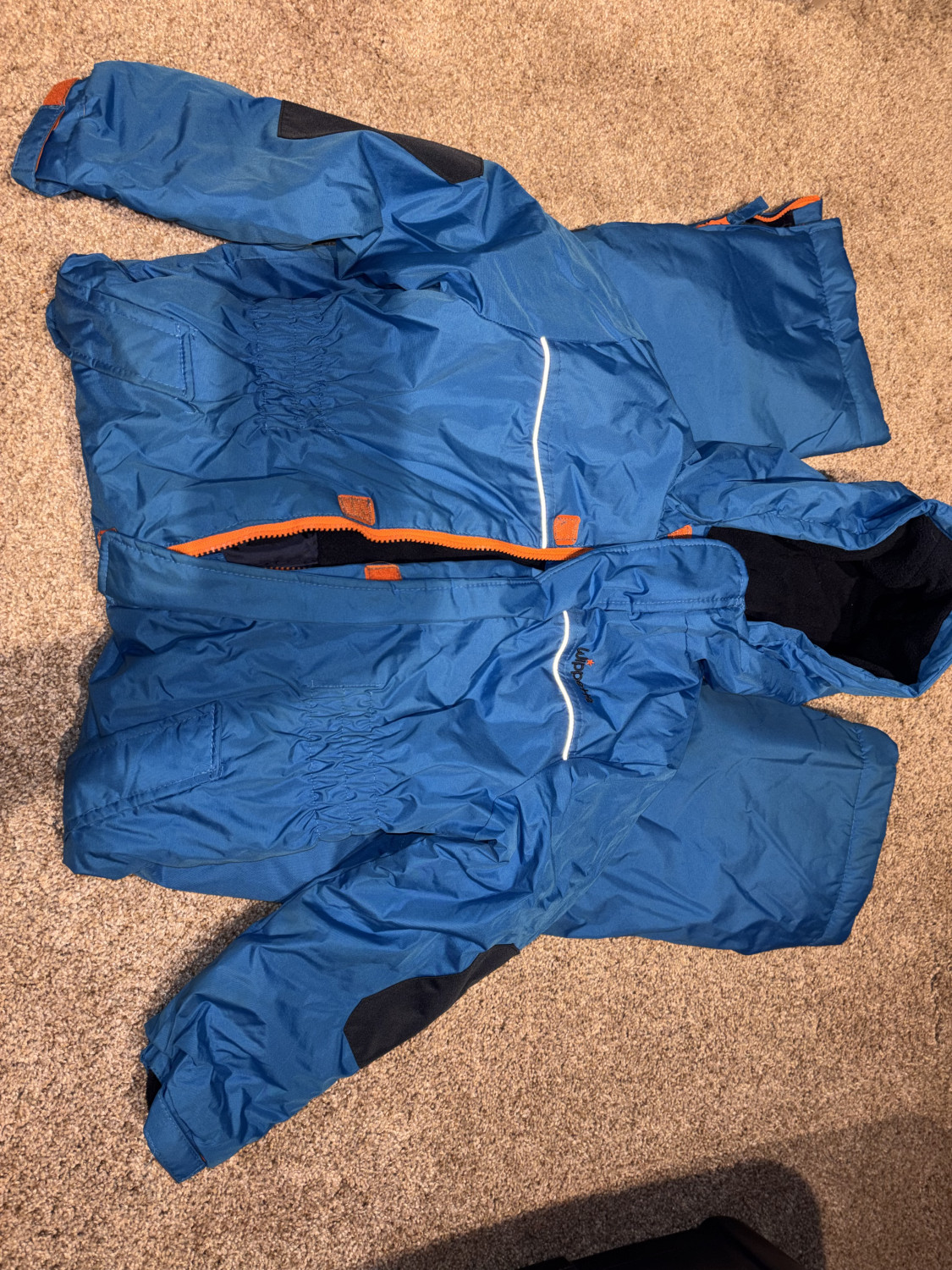 Crotch ripped and there is a little hole stated in the armpit (shown). I was afraid to throw it in the washer because I didn’t want to further damage it before I got repaired. Fleece lined hood.